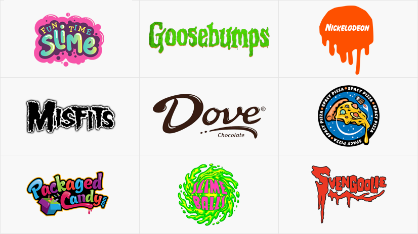 Instead of using conventional fonts and symbols, these logos incorporate slime-inspired elements and a more organic feel. In short, they are playful and fun.